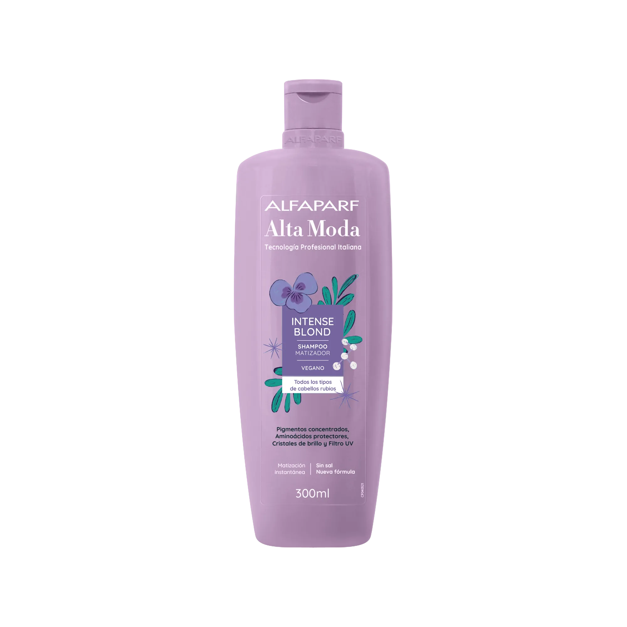 Intense Blond limpia de forma acondicionadora y contiene pigmentos directos para iniciar el proceso de matización.