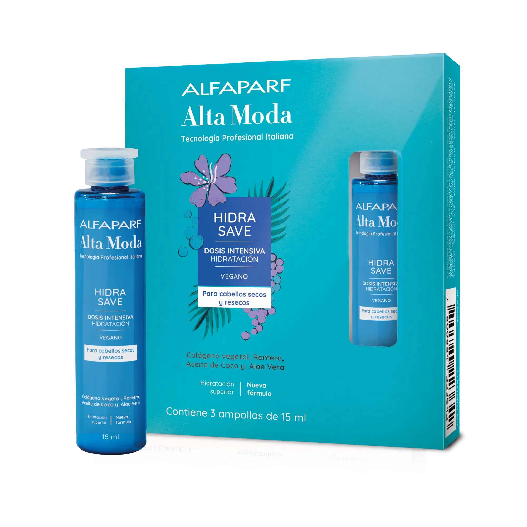 ¡Alta Moda Hidra Save recupera la hidratación en todas las capas de la fibra y devuelve el brillo para un cabello radiante!