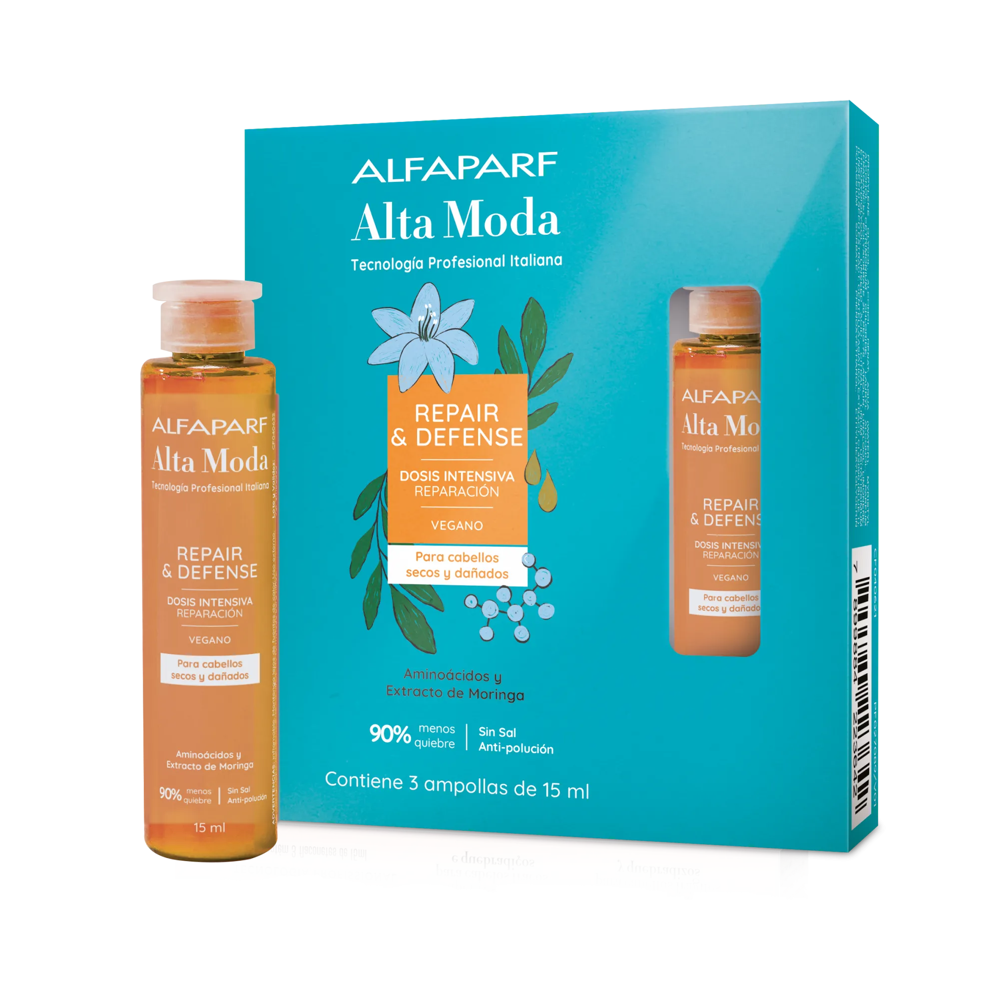 Dosis intensiva con acción reparadora de choque para cabellos dañados. Resultado inmediato en una sola aplicación. Más fuerza, 90% menos rotura y escudo protector contra los daños de la contaminación. Restauración para combatir daños externos y reconstruir la fibra desde el interior para una reparación total! Repair & Defense tiene una mezcla de poderosos activos: extracto de semillas de moringa y aminoácidos, que juntos reestructuran la fibra capilar. Su efecto acondicionador y reparador protege el cabello de la contaminación, restaurando profundamente con resultados de suavidad y brillo intenso.