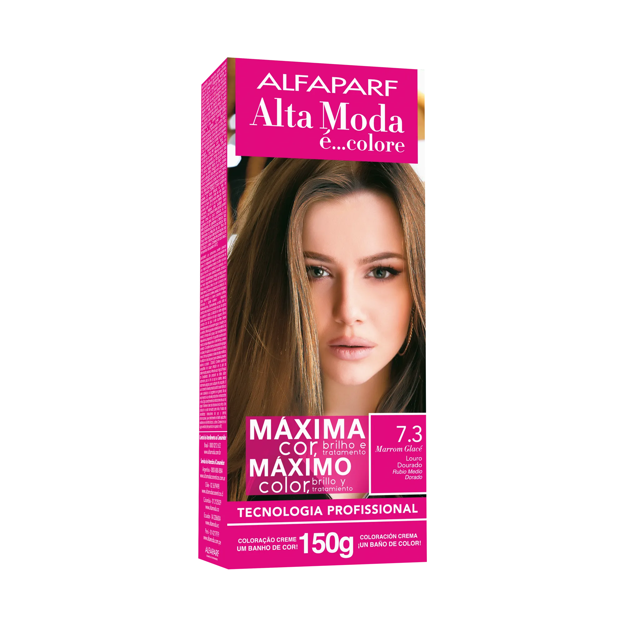 Alta Moda é... Coloración en crema. Tecnología Profesional Italiana. Máximo color, brillo y tratamiento. La única con 150 g. Cobertura perfecta de las canas. Pigmentos micronizados concentrados, que se fijan en las capas más profundas del cabello y se depositan allí definitivamente, para dar un nuevo color y una nueva vida al cabello.