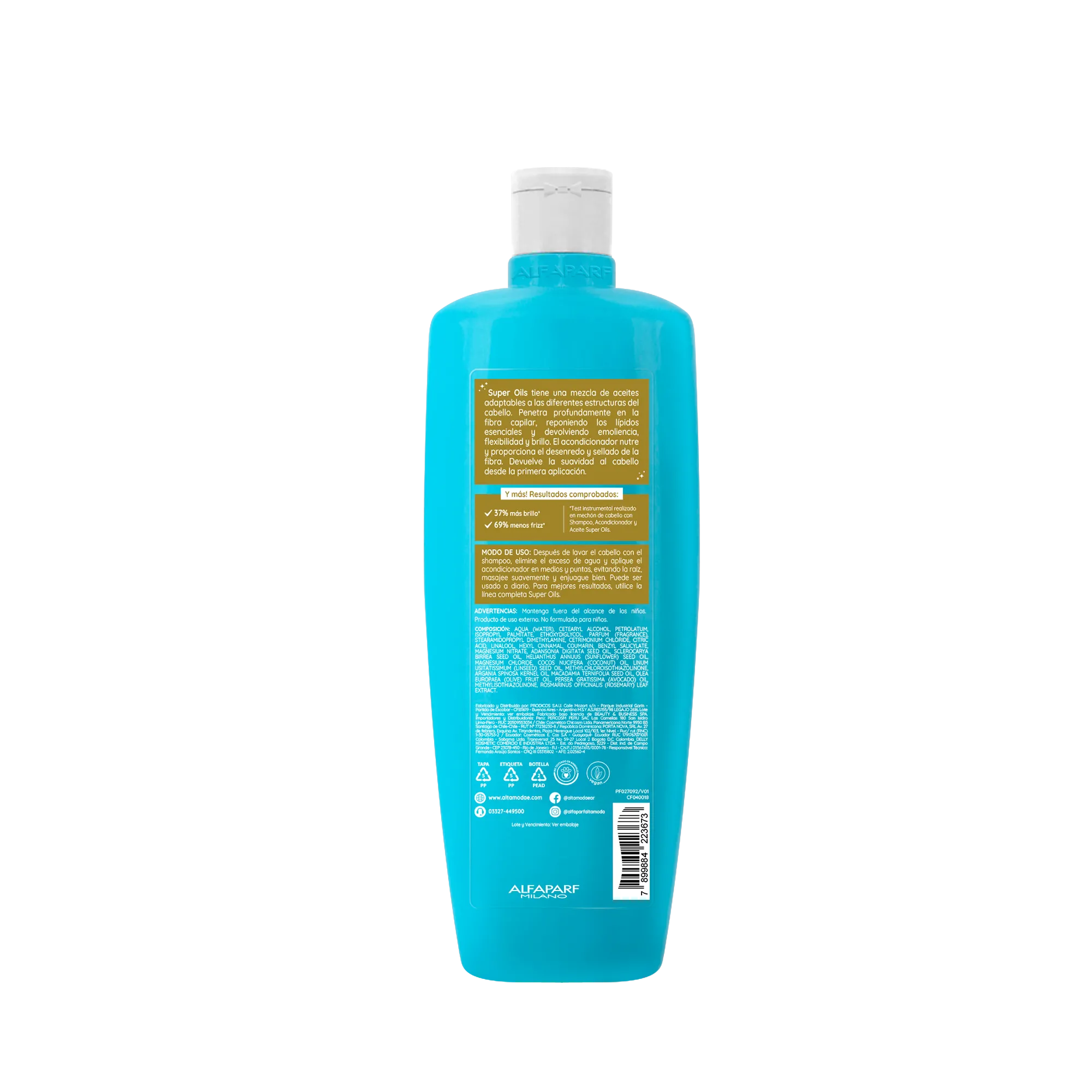 Alta Moda Super Oils penetra profundamente en la fibra capilar, reponiendo los lípidos esenciales y devolviendo emoliencia, flexibilidad y el brillo.