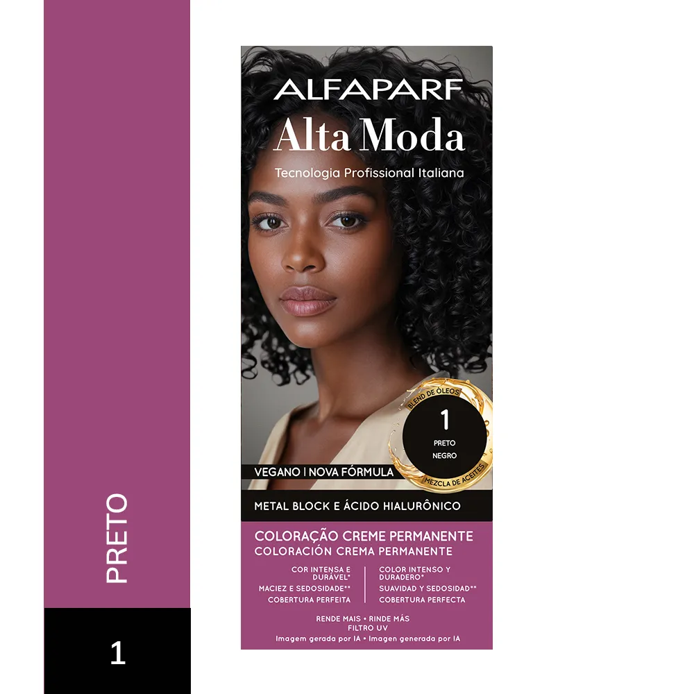 COMPOSIÇÃO / COMPOSICIÓN: Coloração Creme Permanente / Coloración Crema Permanente Alfaparf Alta Moda - Proc. ANVISA n˚.: 25351.451050/2024-88 - AQUA (WATER), CETEARYL ALCOHOL, CETEARETH-50, PROPYLENE GLYCOL, P-PHENYLENEDIAMINE, PEG-40 HYDROGENATED CASTOR OIL, LAURYL ALCOHOL, AMMONIA, 2-METHYLRESORCINOL, 2,4 DIAMINOPHENOXYETHANOL HCL, M-AMINOPHENOL, MYRISTYL ALCOHOL, ETHANOLAMINE, COCAMIDOPROPYL BETAINE, SODIUM SULFITE, PARFUM (FRAGRANCE), ERYTHORBIC ACID, POLYQUATERNIUM-22, EDTA, BISABOLOL, AMYL SALICYLATE, ETHYLHEXYL METHOXYCINNAMATE, HELIANTHUS ANNUUS (SUNFLOWER) SEED OIL, GLYCERIN, COCOS NUCIFERA (COCONUT) OIL, LINUM USITATISSIMUM (LINSEED) SEED OIL, SODIUM PCA, SODIUM LACTATE, SOY AMINO ACIDS, ARGININE, WHEAT AMINO ACIDS, ASPARTIC ACID, PCA, SERINE, THREONINE, ARGANIA SPINOSA KERNEL OIL, MACADAMIA TERNIFOLIA SEED OIL, OLEA EUROPAEA (OLIVE) FRUIT OIL, PERSEA GRATISSIMA (AVOCADO) OIL, ARGININE HCL, PENTYLENE GLYCOL, SODIUM HYALURONATE CROSSPOLYMER, HYDROLYZED RICE PROTEIN, PHYTIC ACID, ORYZA SATIVA (RICE) EXTRACT, GLYCINE, ALANINE, VALINE, SODIUM BENZOATE, ISOLEUCINE, PROLINE, TOCOPHEROL, HISTIDINE, PHENYLALANINE, POTASSIUM SORBATE.