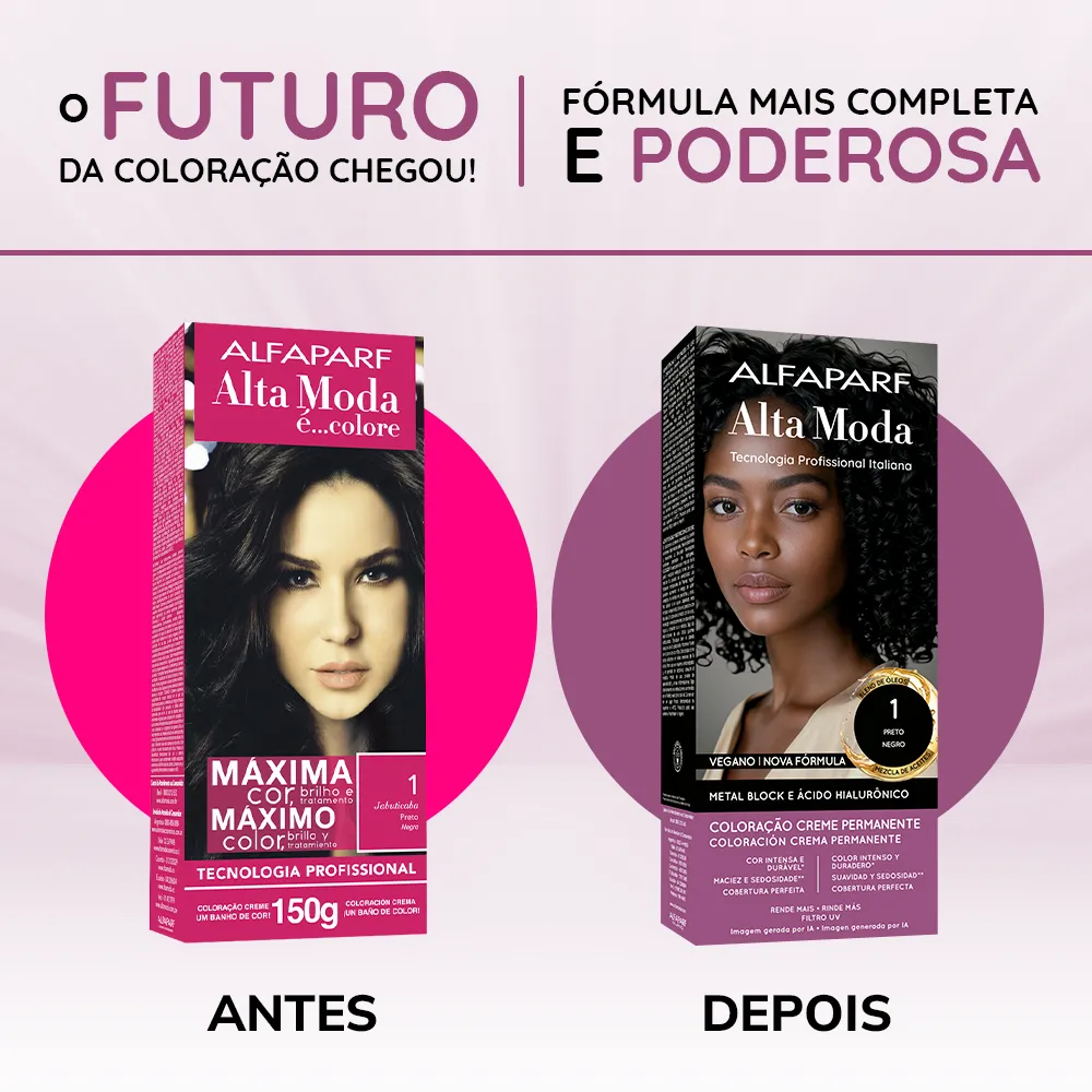 Coloração Creme Permanente que entrega cores intensas, vibrantes e com aparência mais saudável. Sua fórmula exclusiva combina a Tecnologia Metal Block, com ação antioxidante que ajuda a remover o acúmulo de metais pesados e impurezas dos fios, com o poder do Ácido Hialurônico, que garante maciez, sedosidade e proteção da cor. É enriquecida com um Blend de Óleos Nutritivos, composto por coco, macadâmia, oliva, abacate, girassol e argan, que proporcionam nutrição profunda, flexibilidade e fios visivelmente mais saudáveis.