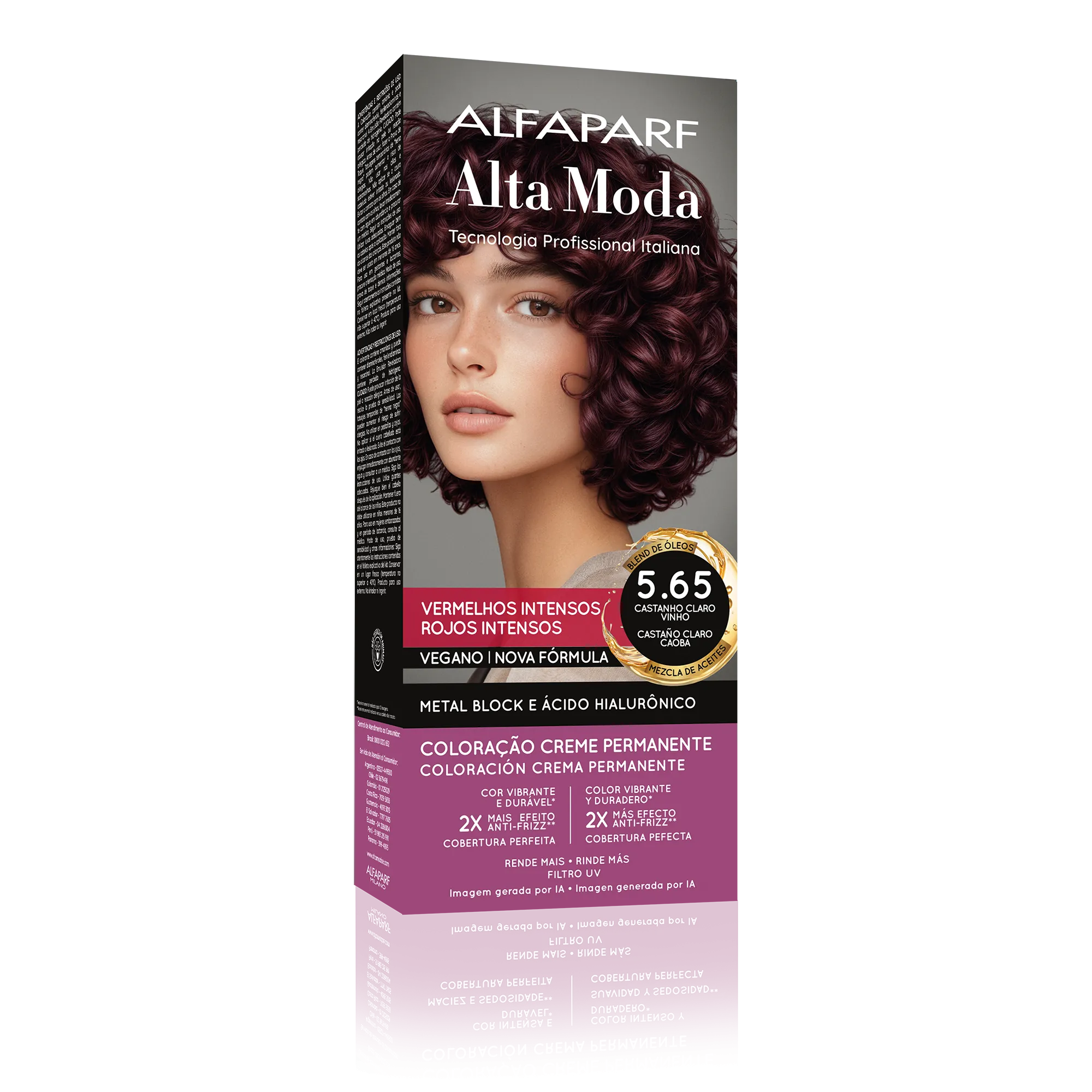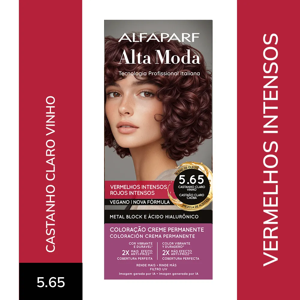COMPOSIÇÃO / COMPOSICIÓN: Coloração Creme Permanente / Coloración Crema Permanente Alfaparf Alta Moda - Proc. ANVISA n˚.: 25351.451050/2024-88 - AQUA (WATER), CETEARYL ALCOHOL, PROPYLENE GLYCOL, CETEARETH-50, PEG-40 HYDROGENATED CASTOR OIL, AMMONIA, LAURYL ALCOHOL, 2-METHYL-5-HYDROXYETHYLAMINOPHENOL, TOLUENE-2,5-DIAMINE SULFATE, MYRISTYL ALCOHOL, ETHANOLAMINE, COCAMIDOPROPYL BETAINE, SODIUM SULFITE, 1-HYDROXYETHYL 4,5-DIAMINO PYRAZOLE, SULFATE, PARFUM (FRAGRANCE), ERYTHORBIC ACID, POLYQUATERNIUM-22, 4-AMINO-2-HYDROXYTOLUENE, EDTA, P-AMINOPHENOL, BISABOLOL, AMYL SALICYLATE, 1-NAPHTHOL, ETHYLHEXYL METHOXYCINNAMATE, HELIANTHUS ANNUUS (SUNFLOWER) SEED OIL, GLYCERIN, COCOS NUCIFERA (COCONUT) OIL, LINUM USITATISSIMUM (LINSEED) SEED OIL, SODIUM PCA, SODIUM LACTATE, SOY AMINO ACIDS, ARGININE, WHEAT AMINO ACIDS, ASPARTIC ACID, PCA, SERINE, THREONINE, ARGANIA SPINOSA KERNEL OIL, MACADAMIA TERNIFOLIA SEED OIL, OLEA EUROPAEA (OLIVE) FRUIT OIL, PERSEA GRATISSIMA (AVOCADO) OIL, ARGININE HCL, PENTYLENE GLYCOL, SODIUM HYALURONATE CROSSPOLYMER, HYDROLYZED RICE PROTEIN, PHYTIC ACID, ORYZA SATIVA (RICE) EXTRACT, GLYCINE, ALANINE, VALINE, SODIUM BENZOATE, ISOLEUCINE, PROLINE, TOCOPHEROL, HISTIDINE, PHENYLALANINE, POTASSIUM SORBATE.