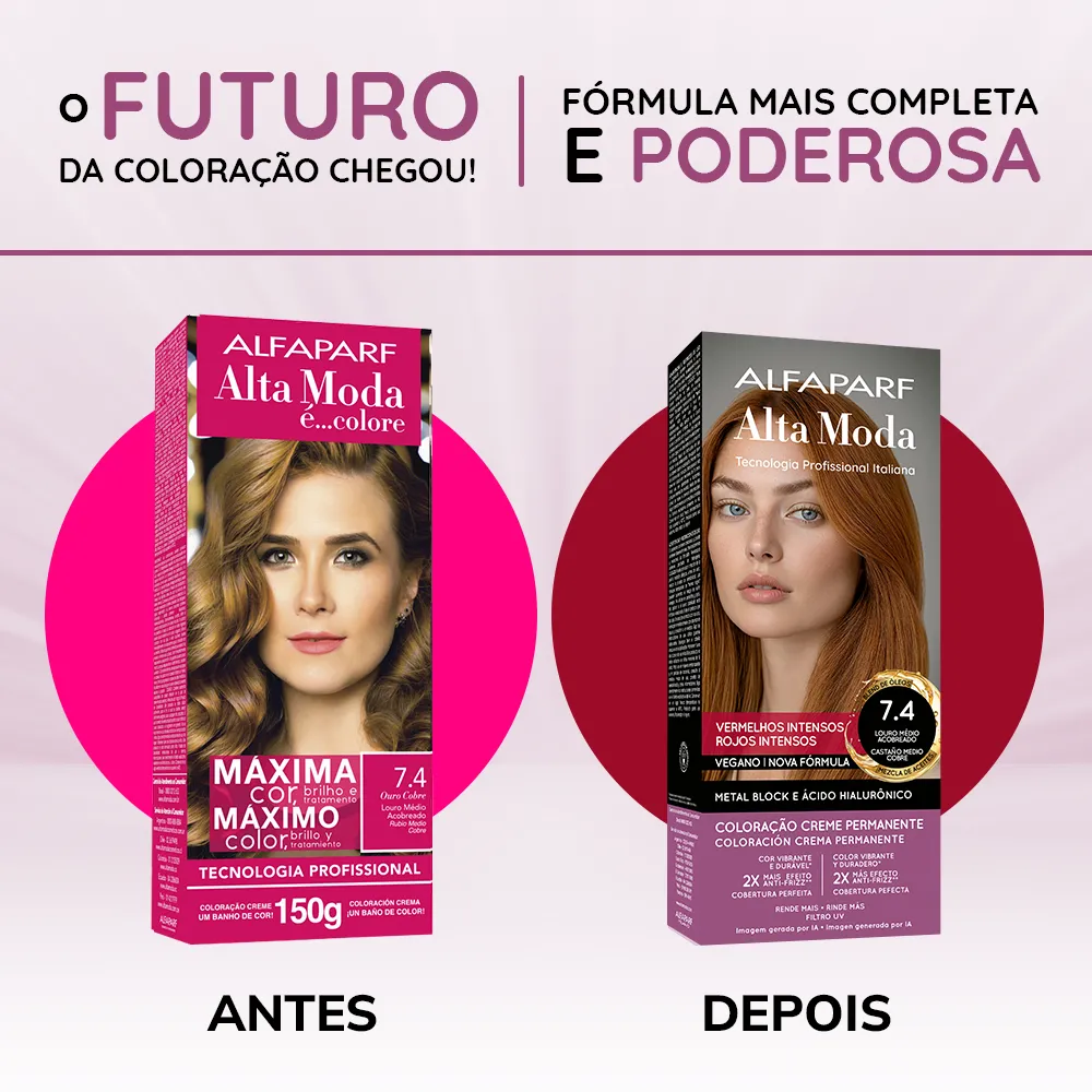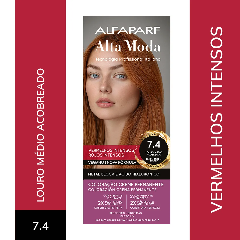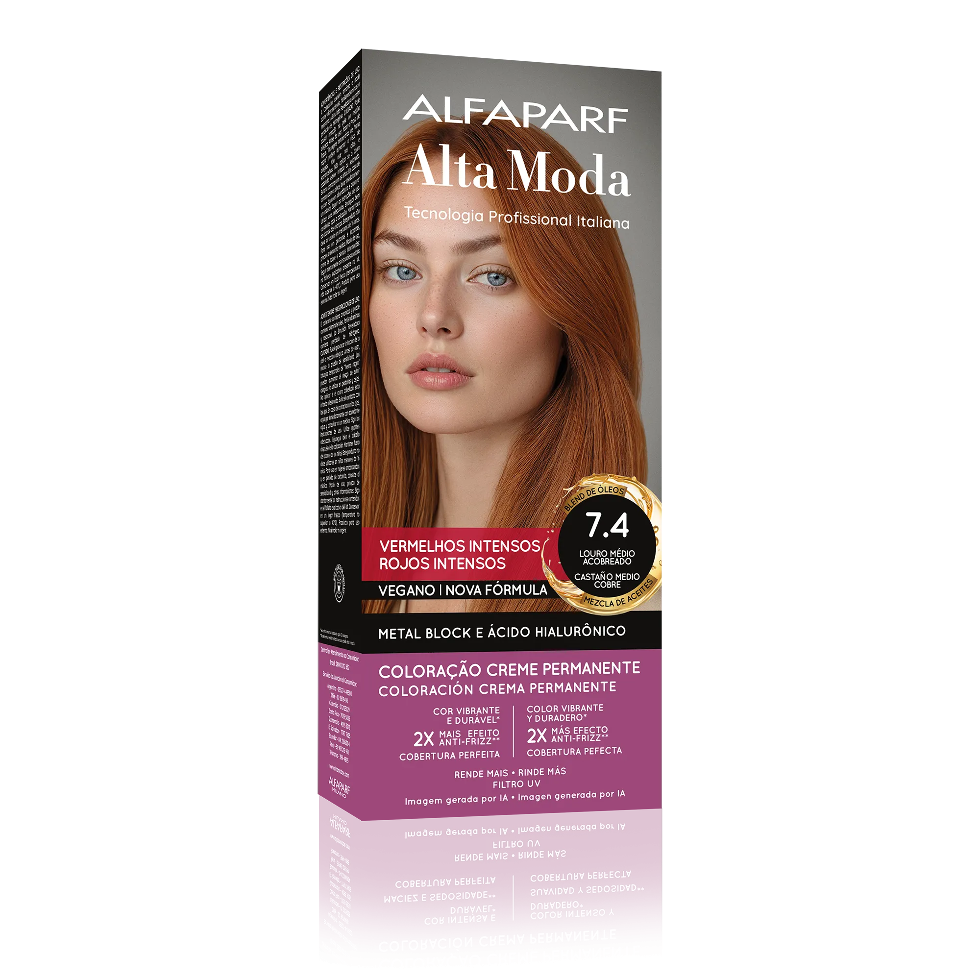 COMPOSIÇÃO / COMPOSICIÓN: Coloração Creme Permanente / Coloración Crema Permanente Alfaparf Alta Moda - Proc. ANVISA n˚.: 25351.451050/2024-88 - AQUA (WATER), CETEARYL ALCOHOL, PROPYLENE GLYCOL, CETEARETH-50, PEG-40 HYDROGENATED CASTOR OIL, AMMONIA, LAURYL ALCOHOL, P-AMINOPHENOL, MYRISTYL ALCOHOL, 2-METHYL-5-HYDROXYETHYLAMINOPHENOL, COCAMIDOPROPYL BETAINE, SODIUM SULFITE, PARFUM (FRAGRANCE), 2-METHYLRESORCINOL, ERYTHORBIC ACID, POLYQUATERNIUM-22, ETHANOLAMINE, EDTA, RESORCINOL, P-PHENYLENEDIAMINE, BISABOLOL, M-AMINOPHENOL, 2-AMINO-6-CHLORO-4-NITROPHENOL, AMYL SALICYLATE, ETHYLHEXYL METHOXYCINNAMATE, HELIANTHUS ANNUUS (SUNFLOWER) SEED OIL, GLYCERIN, COCOS NUCIFERA (COCONUT) OIL, LINUM USITATISSIMUM (LINSEED) SEED OIL, SODIUM PCA, SODIUM LACTATE, SOY AMINO ACIDS, ARGININE, WHEAT AMINO