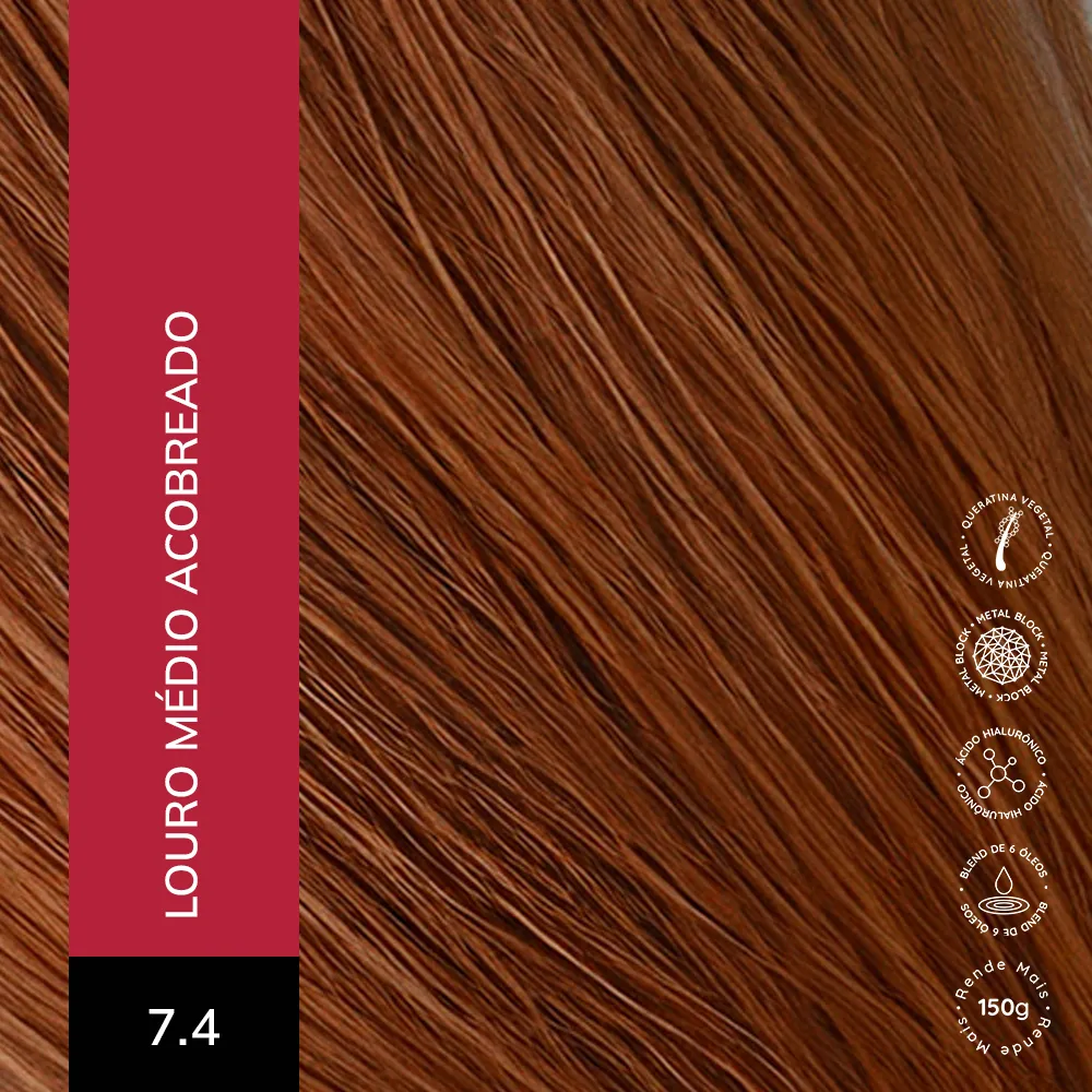 Coloração Creme Permanente que entrega cores intensas, vibrantes e com aparência mais saudável. Sua fórmula exclusiva combina a Tecnologia Metal Block, com ação antioxidante que ajuda a remover o acúmulo de metais pesados e impurezas dos fios, com o poder do Ácido Hialurônico, que garante maciez, sedosidade e proteção da cor. É enriquecida com um Blend de Óleos Nutritivos, composto por coco, macadâmia, oliva, abacate, girassol e argan, que proporcionam nutrição profunda, flexibilidade e fios visivelmente mais saudáveis.