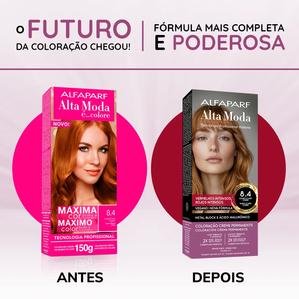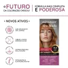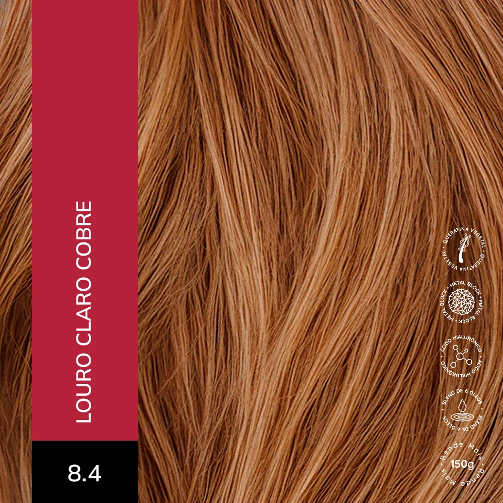 Coloração Creme Permanente que entrega cores intensas, vibrantes e com aparência mais saudável. Sua fórmula exclusiva combina a Tecnologia Metal Block, com ação antioxidante que ajuda a remover o acúmulo de metais pesados e impurezas dos fios, com o poder do Ácido Hialurônico, que garante maciez, sedosidade e proteção da cor. É enriquecida com um Blend de Óleos Nutritivos, composto por coco, macadâmia, oliva, abacate, girassol e argan, que proporcionam nutrição profunda, flexibilidade e fios visivelmente mais saudáveis.
