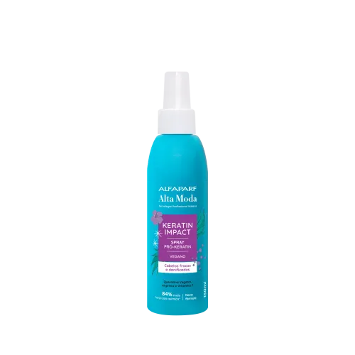 Keratin Impact possui um blend com alta concentração de ativos reparadores que resgatam gradativamente as camadas fragilizadas da fibra capilar. Ideal para uma reconstrução completa, o Spray Pró-Keratin refaz as estruturas internas, reduz a quebra, repõe a hidratação, além de neutralizar o frizz! Fórmula leve e de fácil absorção que proporciona condicionamento e alto desembaraço.