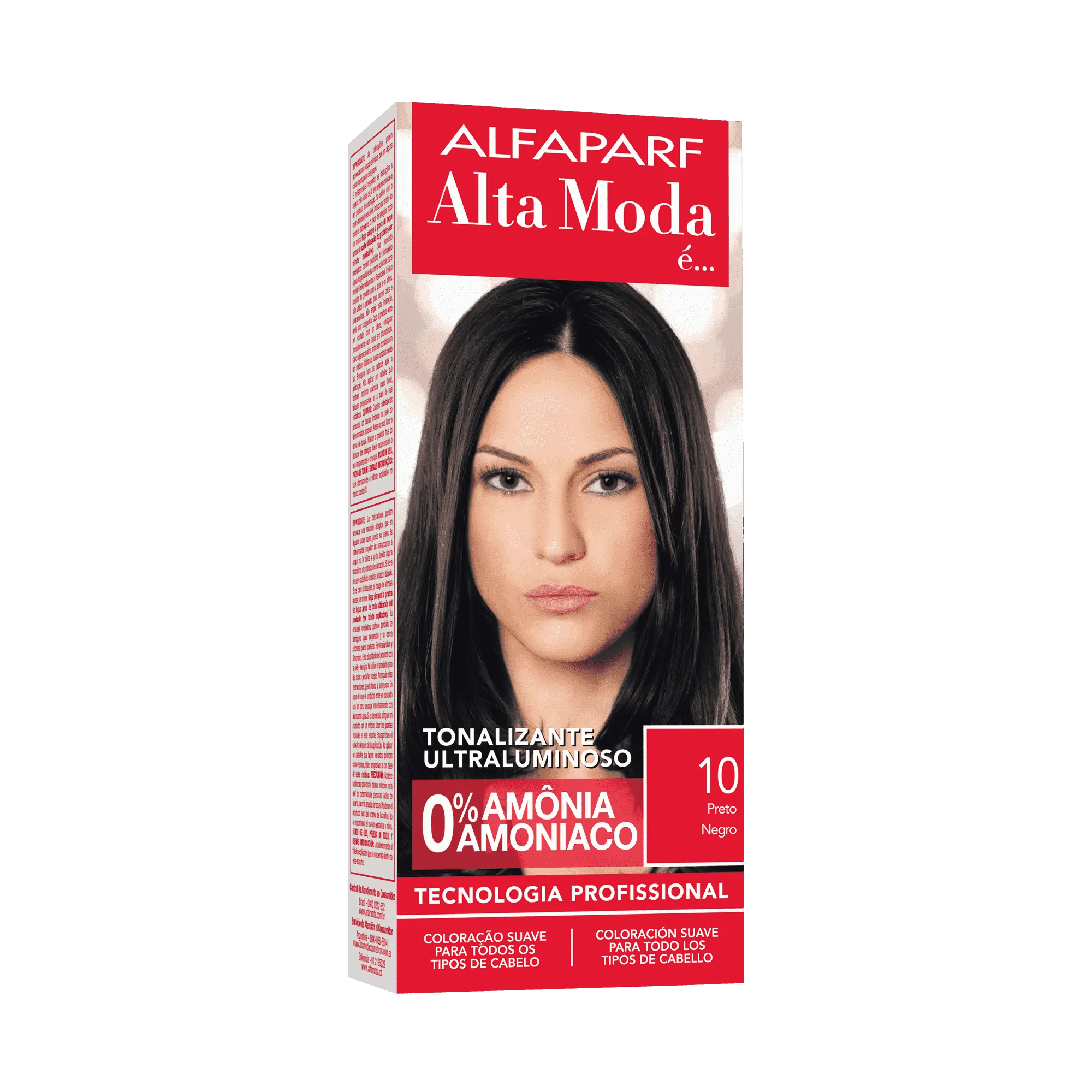 ALTA MODA é…Tonalizante Ultraluminoso. 0% amônia. Tecnologia Profissional Italiana. Tonaliza os cabelos de forma prática, segura e moderna, com cores intensas e ultraluminosas, sem danificar a beleza natural dos fios. Cor sem agressão para todo tipo de cabelo – Inclusive os alisados. Sistema Alfa Multi-lamellare que garante a intensidade da cor, seu brilho e resistência às lavagens.