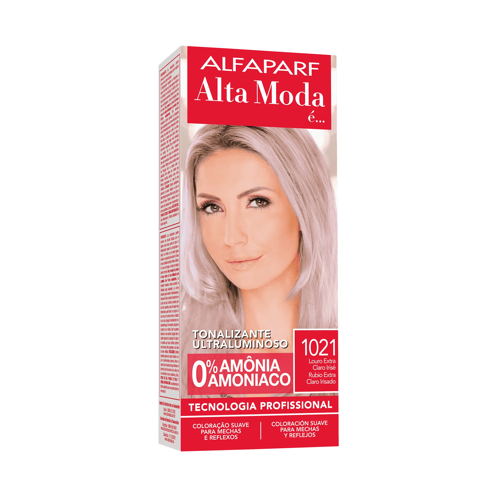 ALTA MODA é…Tonalizante Ultraluminoso. 0% amônia. Tecnologia Profissional Italiana. Solução ideal para matizar cabelos descoloridos, decapados, com mechas e reflexos ou para itensificar os reflexos de um cabelo natural super claro. Sistema Alfa Multi-lamellare que garante a intensidade da cor, seu brilho e a resistência às lavagens.
