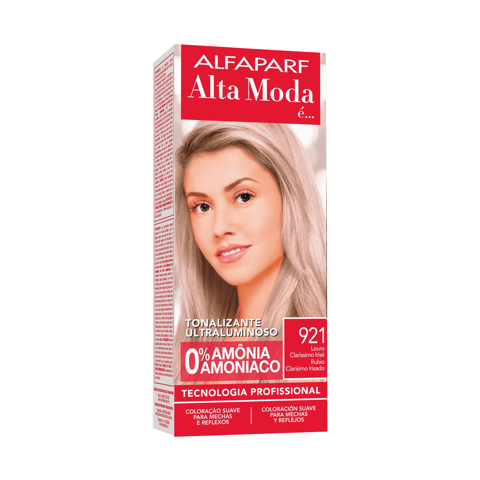 ALTA MODA é…Tonalizante Ultraluminoso. 0% amônia. Tecnologia Profissional Italiana. Solução ideal para matizar cabelos descoloridos, decapados, com mechas e reflexos ou para itensificar os reflexos de um cabelo natural super claro. Sistema Alfa Multi-lamellare que garante a intensidade da cor, seu brilho e a resistência às lavagens.