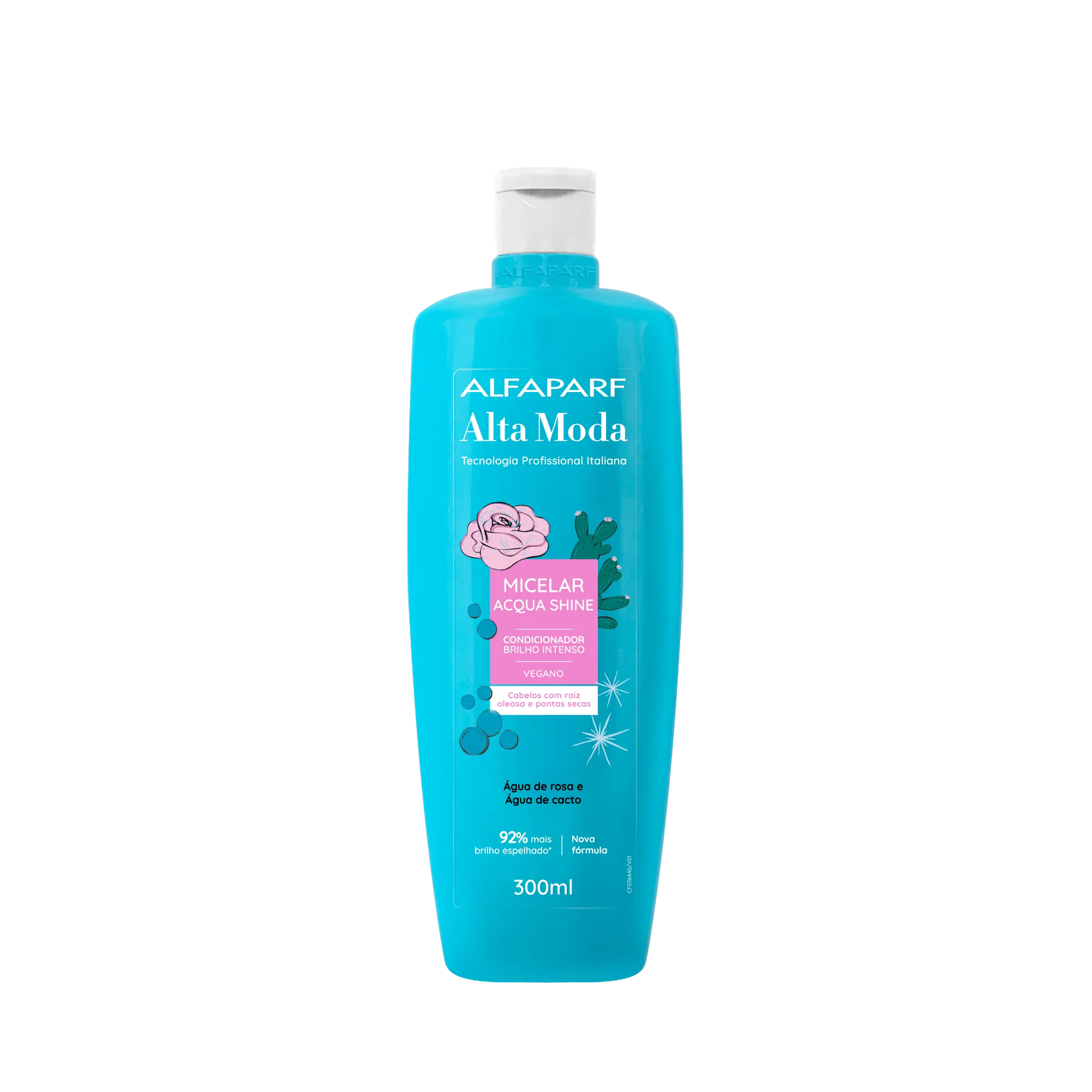 Alta Moda Micelar Acqua Shine possui um blend hidratante que não pesa nos fios! Devolve a leveza, maciez e o brilho máximo, favorecendo a retenção hídrica nas camadas profundas, promovendo uma verdadeira revitalização da fibra!