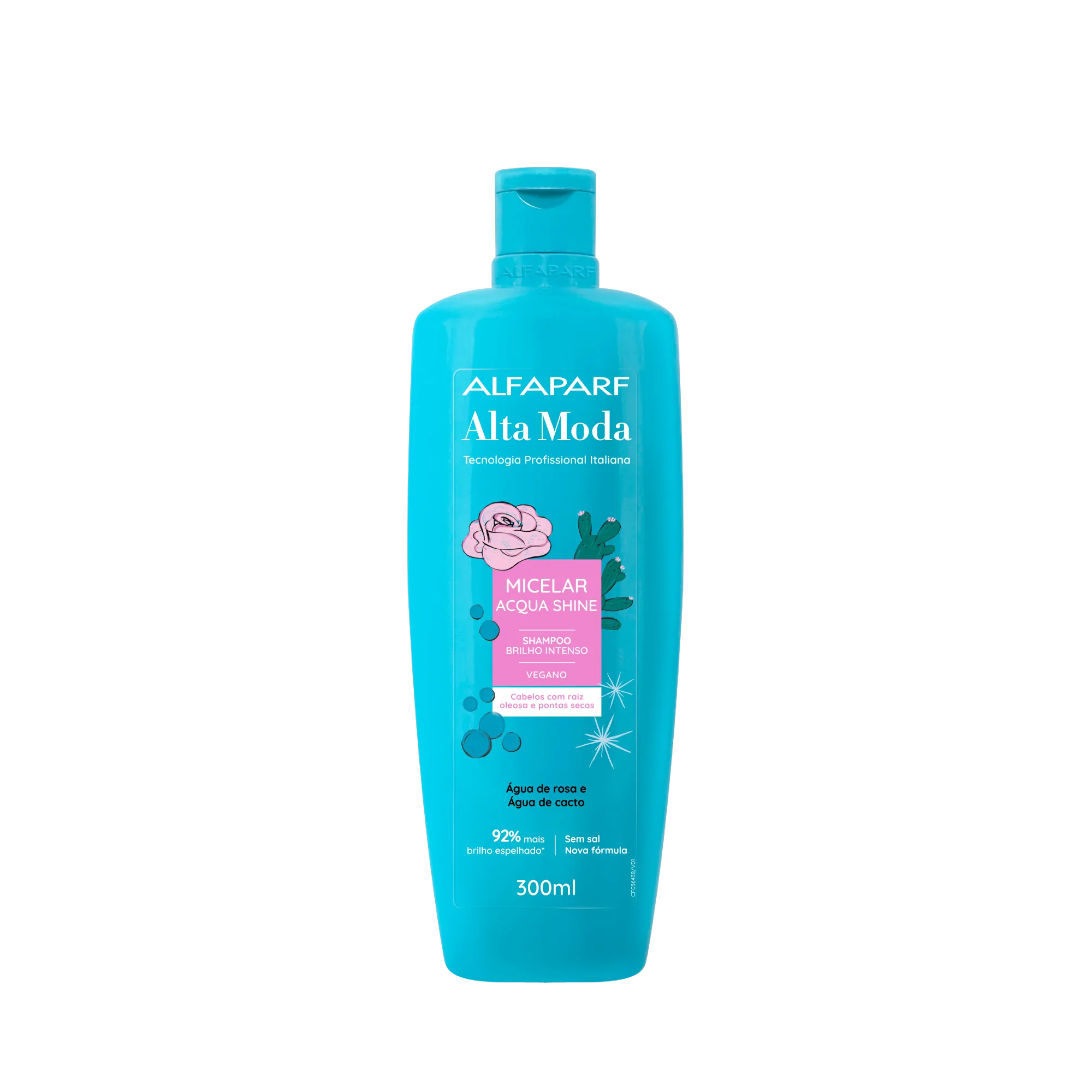 Alta Moda Micelar Acqua Shine possui um blend hidratante que não pesa nos fios! Devolve a leveza, maciez e o brilho máximo, favorecendo a retenção hídrica nas camadas profundas, promovendo uma verdadeira revitalização da fibra!