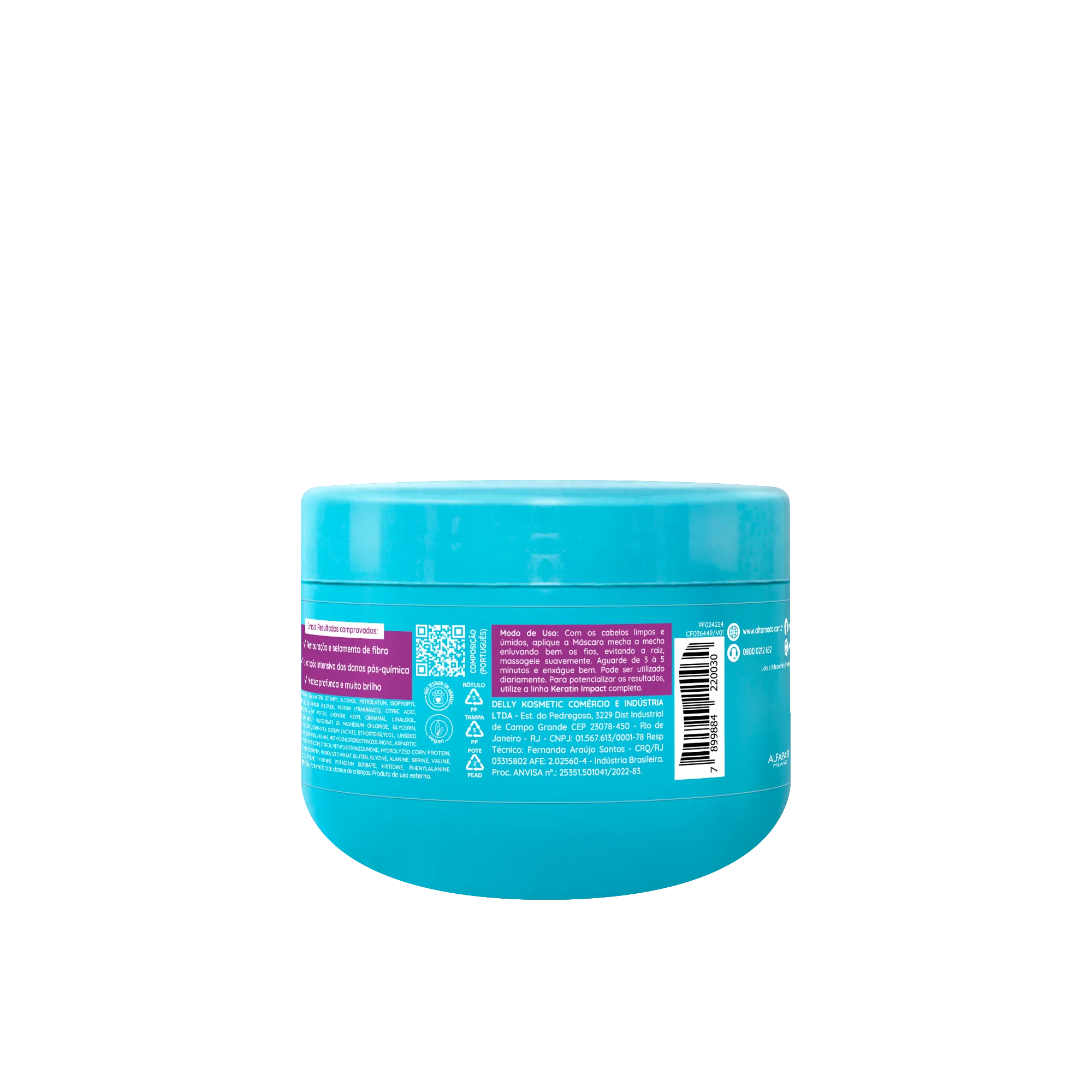 Keratin Impact possui um blend com alta concentração de ativos reparadores que resgatam gradativamente as camadas fragilizadas da fibra capilar. Com um sistema de liberação progressivo, a máscara repara danos profundos e proporciona aos cabelos um escudo maleável sobre a cutícula sem excessos, mantendo-os profundamente estruturados com leveza, alta maciez e muito brilho.