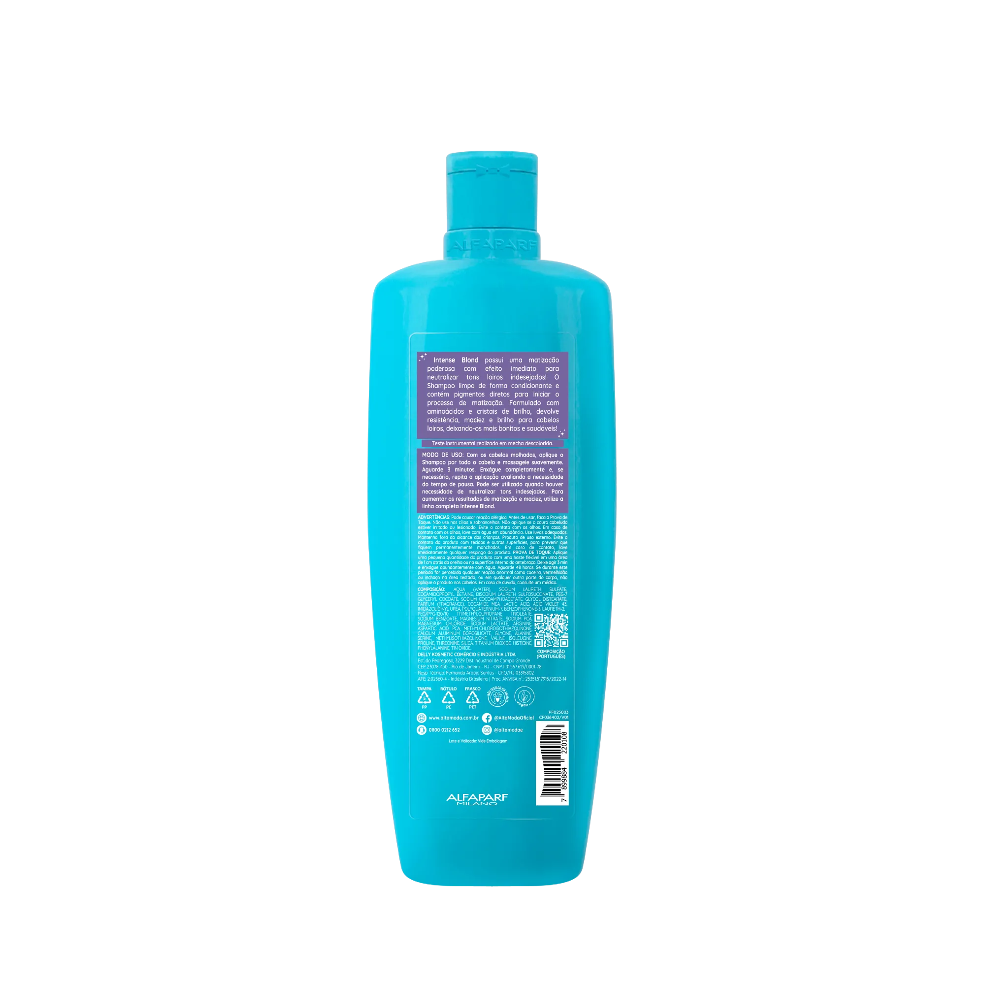 Intense Blond possui uma matização poderosa com efeito imediato para neutralizar tons loiros indesejados! O Shampoo limpa de forma condicionante e
