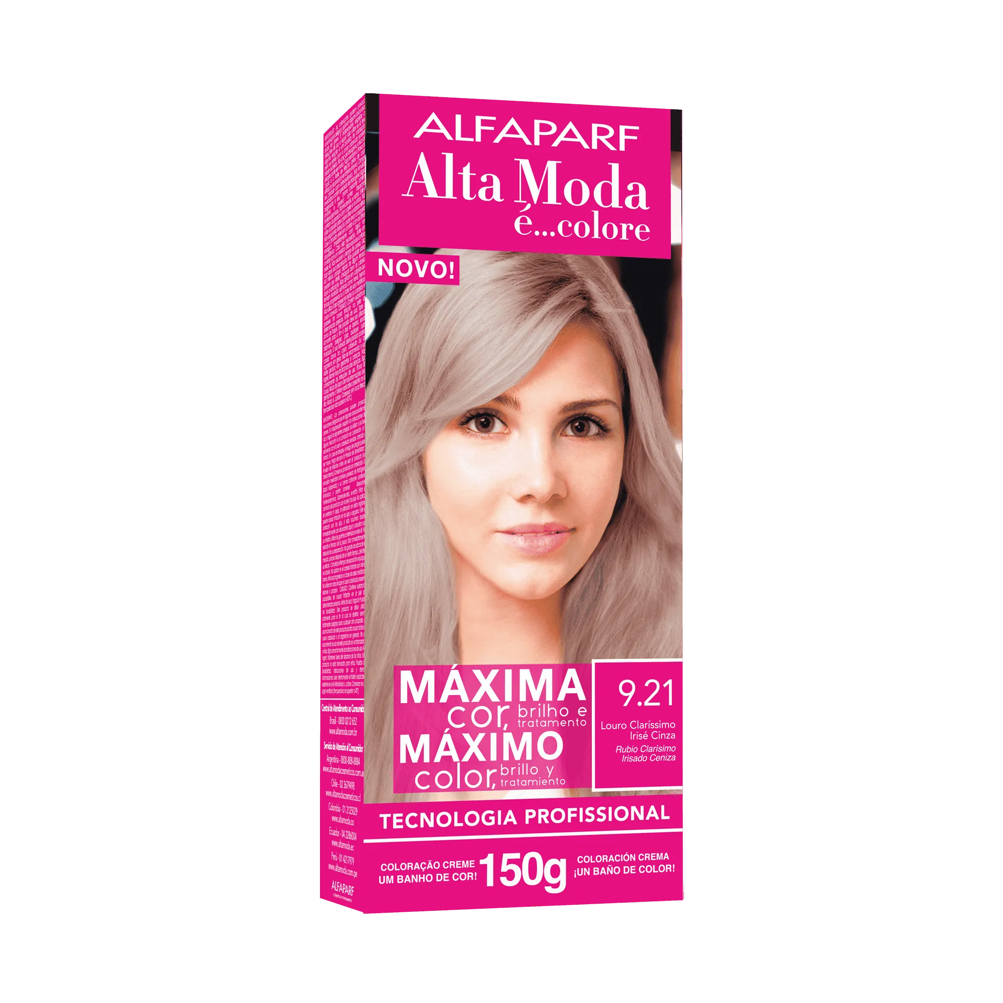 Alta Moda é... coloración en crema. Tecnología Profesional Italiana. Máximo color, brillo y tratamiento. La única con 150 g. Cobertura perfecta de las canas. Pigmentos micronizados concentrados, que se fijan en las capas más profundas del cabello y se depositan allí definitivamente, para dar un nuevo color y una nueva vida al cabello.
