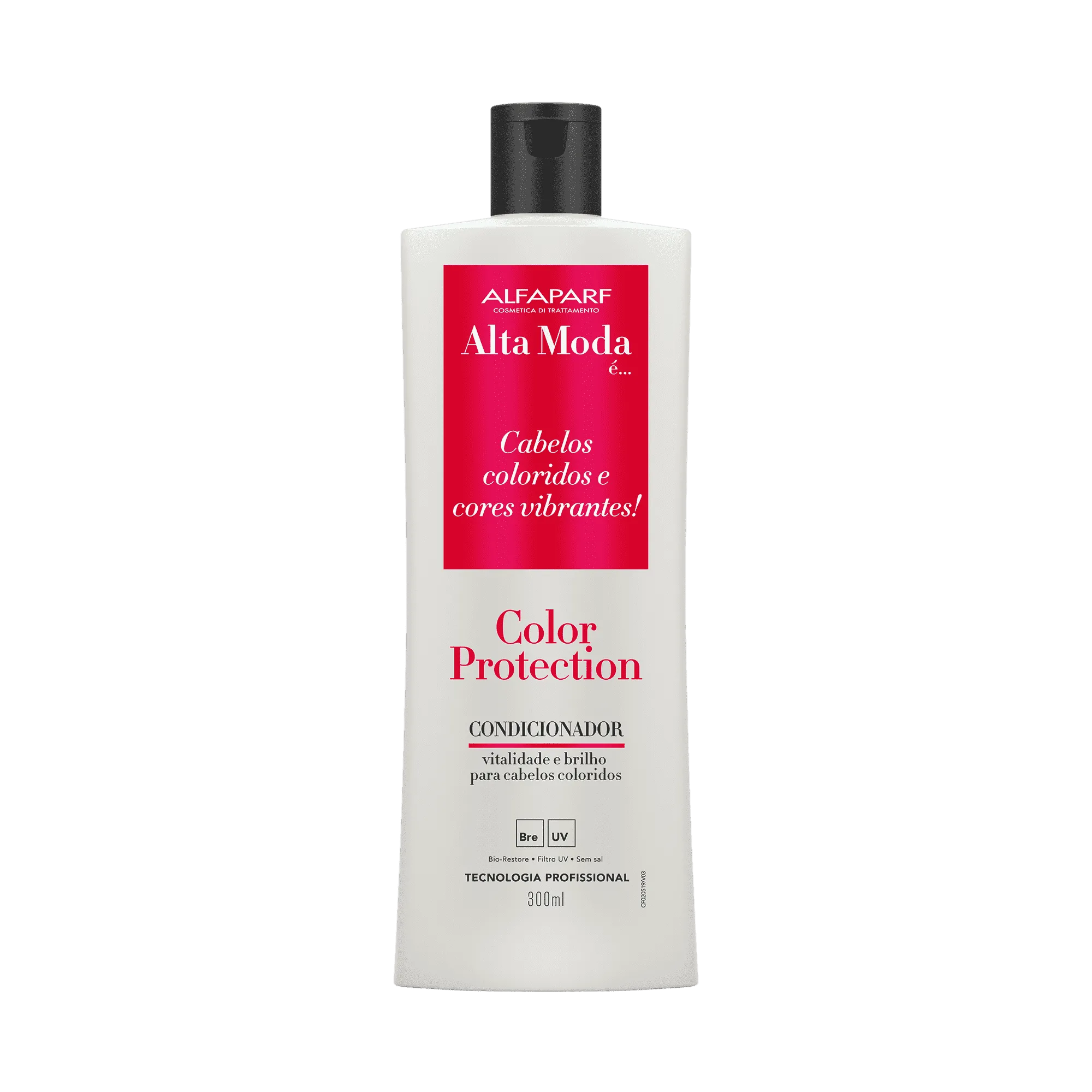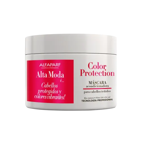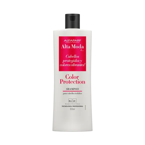 Alta Moda é… Color Protection. Tecnología Profesional Italiana. Para el cabello teñido, que necesita mantener la estructura modificada en perfecto estado. Cuidado del color y la textura del cabello teñido y con reflejos. Con Bio-Restore y Filtro UV activos funcionales que añaden masa, sellan las cutículas y crean una película reflectante de brillo.