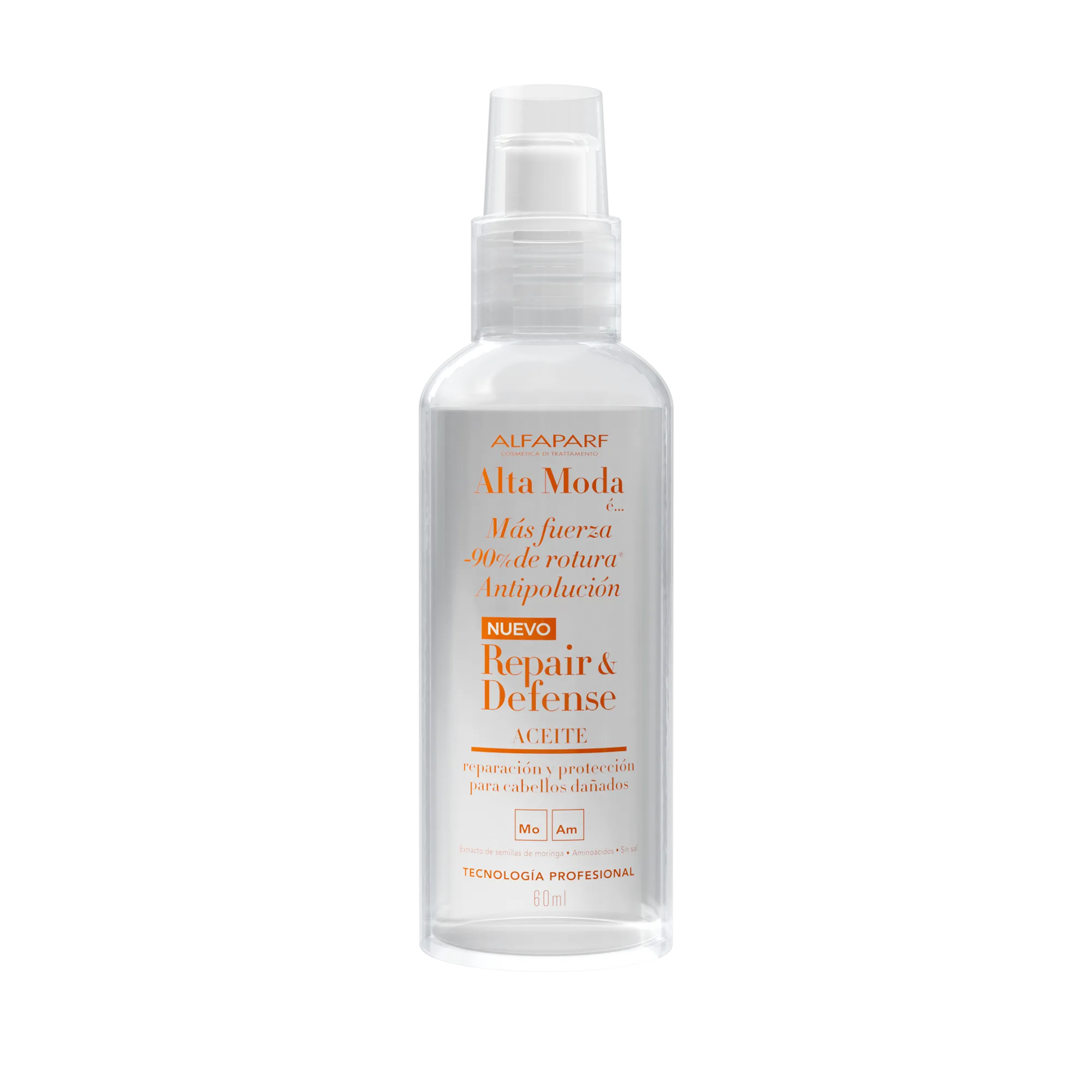 Alta Moda é… Repair & Defense. Tecnología Profesional Italiana. La última generación para cabellos dañados. Repara el daño extremo, reconstruye la fibra capilar y crea una protección contra las agresiones de la polución para un tratamiento reparador completo. Más fuerza, 90 % menos de rotura, escudo protector contra los daños de la contaminación*. Repara y protege tu cabello.