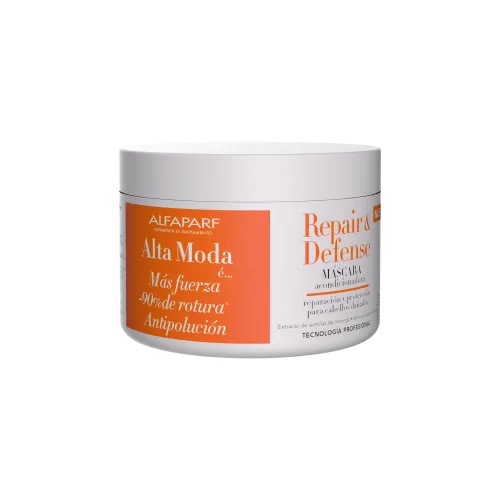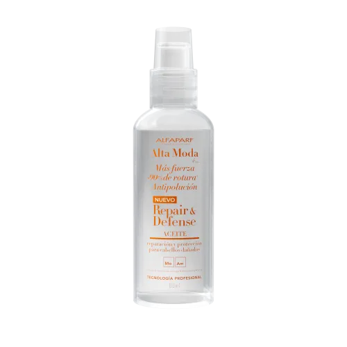 Alta Moda é… Repair & Defense. Tecnología Profesional Italiana. La última generación para cabellos dañados. Repara el daño extremo, reconstruye la fibra capilar y crea una protección contra las agresiones de la polución para un tratamiento reparador completo. Más fuerza, 90 % menos de rotura, escudo protector contra los daños de la contaminación*. Repara y protege tu cabello.